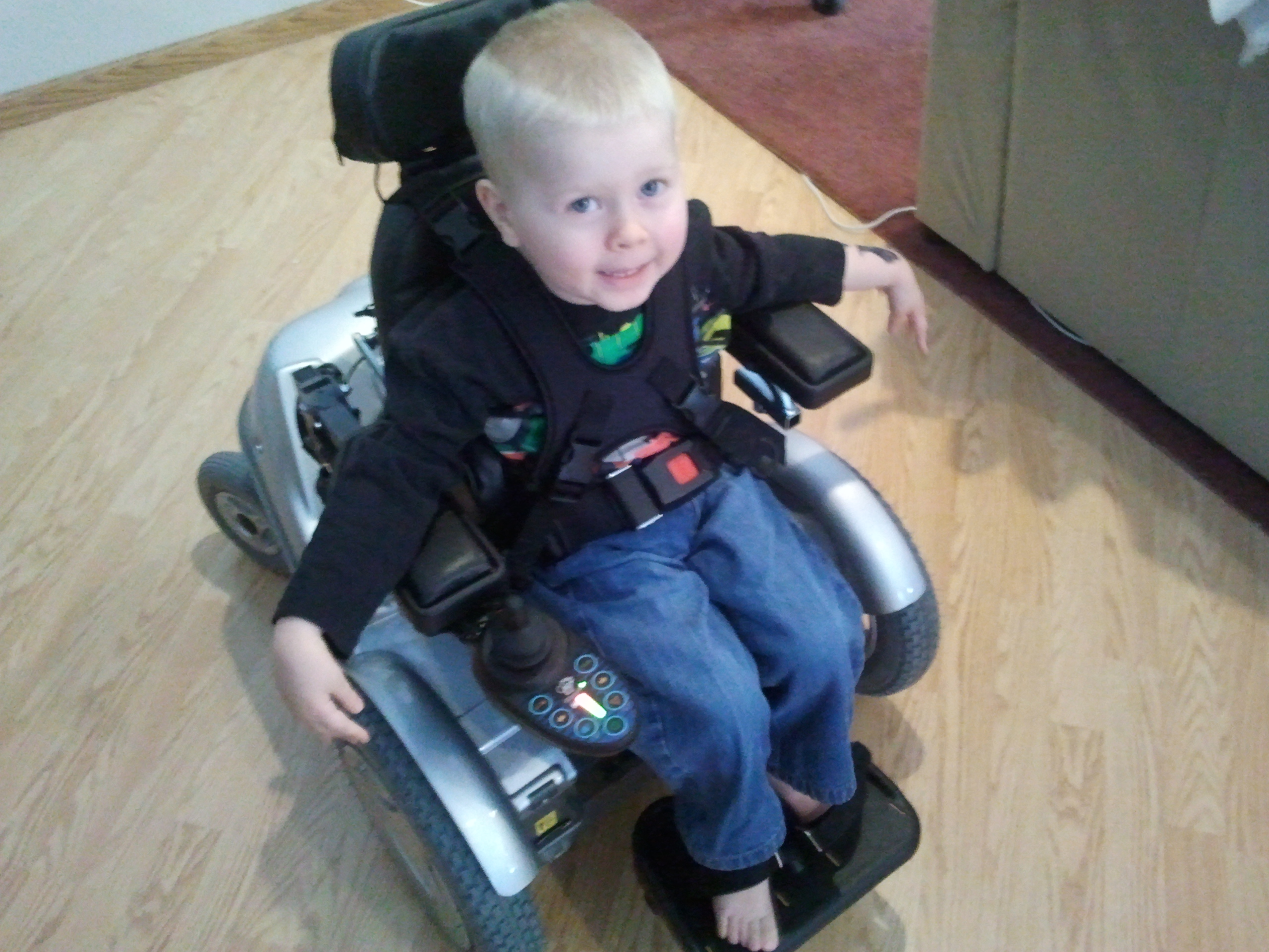 We had a great meeting with Santa as you can see and have a new addition this year with our Elf on a Shelf – ‘Dash’! Brayden is loving the snow! He would love to play all day outside! His wheels have a hard time gripping the snow but he manages to drive right through. We hope you all are having a blessed holiday and safe travels if you are out and about!
